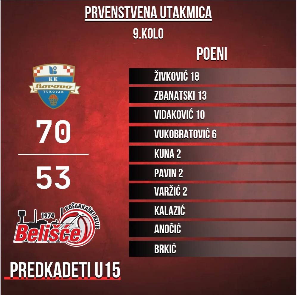 Predkadeti su u Vukovaru protiv Borova upisali prvi poraz u sezoni. Na gostovanje su otišli sa svega jednim igračem 2011. godišta, a njih čak šest u sastavu je bilo 2013. godišta, dvije godine mlađi od konkurencije. U takvom odnosu snaga, koliko toliko se naša ekipa držala prvo poluvrijeme, dobar dio treće četvrtine, ali krajem iste i pogotovo u posljednjoj, nije bilo koncentracije u obrani, napadi su postali sterilni i sve je to odvuklo našu ekipu u prvi poraz, 70:53.