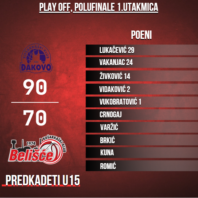 Predkadetska ekipa je došla do polufinala doigravanja, a vikend im je donio gostovanje u Đakovu, kod prvoplasirane ekipe iz druge skupine. Favorizirani domaćin je bolje otvorio utakmicu, imao vodstvo kroz cijelo poluvrijeme, a naši su se dečki prije svega mučili sa obrambenim skokom pa je domaća momčad imala velik broj drugih napada, iz kojih je na kraju i proizašla razlika od 13 poena za njih na poluvremenu.