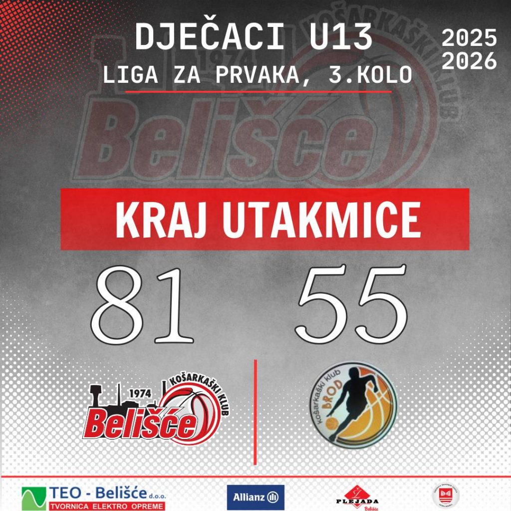 U sklopu 3.kola Lige za prvaka, naša U13 ekipa je bez većih problema došla do pobjede nad ekipom Broda. Od početka su naši dečki nametnuli svoj ritam, iako je obrambeni dio bio nešto lošiji u odnosu na prošle utakmice, no kontrola igre i rezultata bila je na našoj strani kroz cijelu utakmicu.